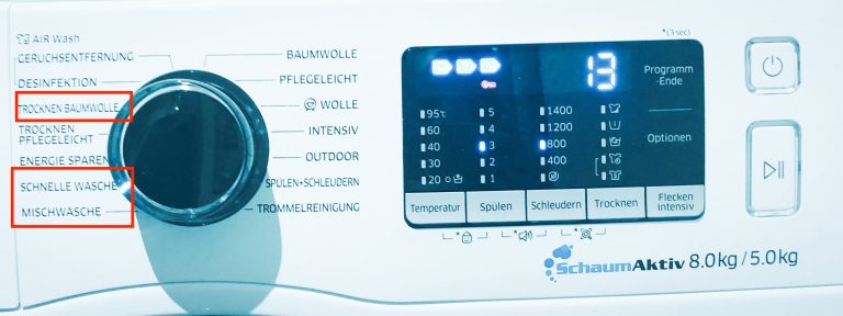 The Samsung machine is both a washer as well as a dryer. Add your laundry and choose your cycle. Be sure to add the liquid detergent to the drawer compartment “II”. “I” is for prewash, and the middle compartment is for softener.